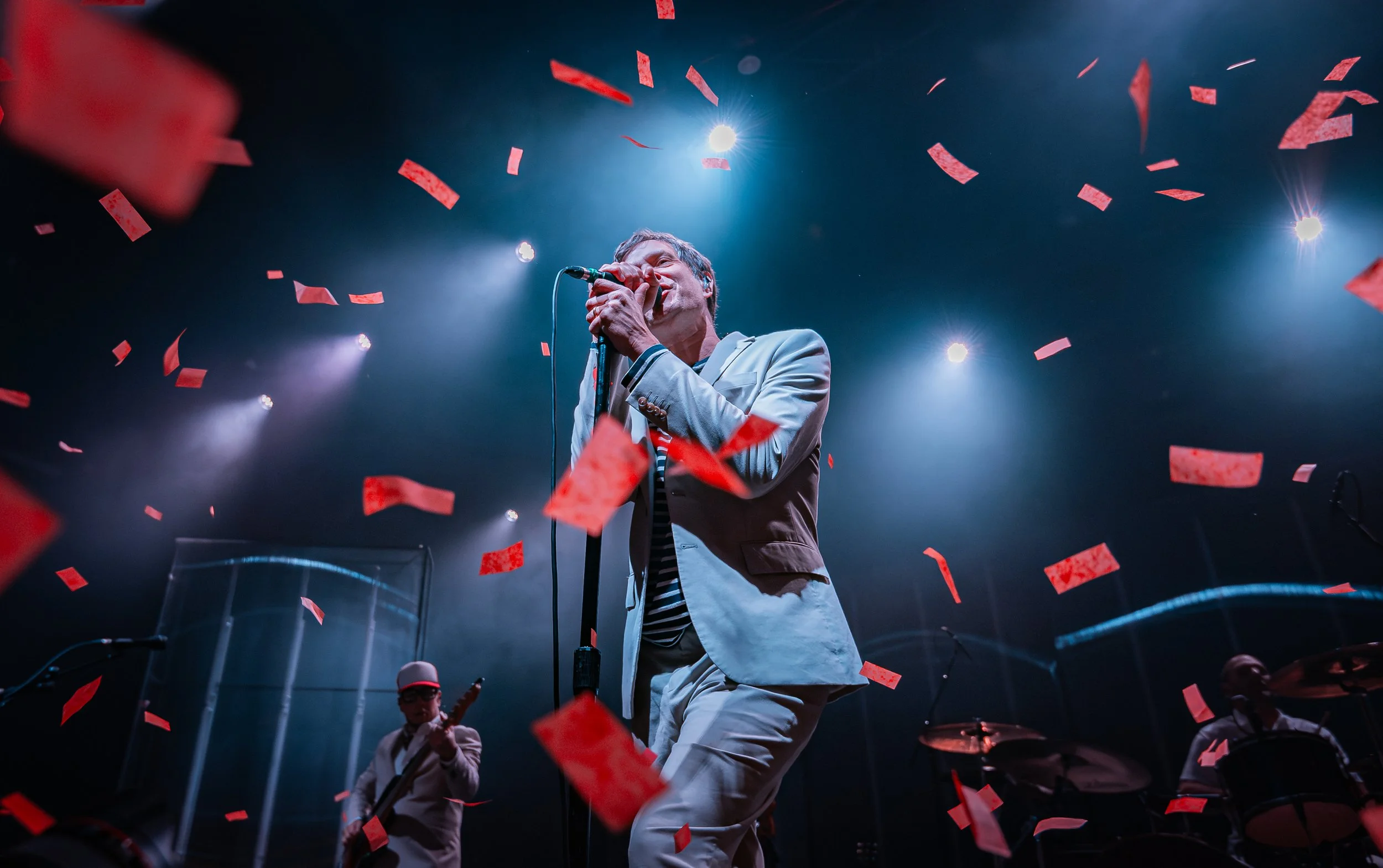 OK Go lit up The Ritz in Raleigh with tons of confetti that were shot from air canons and put on a vibrant, high-energy performance that blended nostalgia, artistry, and pure fun. The packed venue buzzed with excitement as fans of all ages sang, danced, and reveled in the band’s signature mix of indie-pop hooks and visual spectacle. The show was part of their “And The Adjacent Possible” tour, marking their return after more than a decade without a new album.
