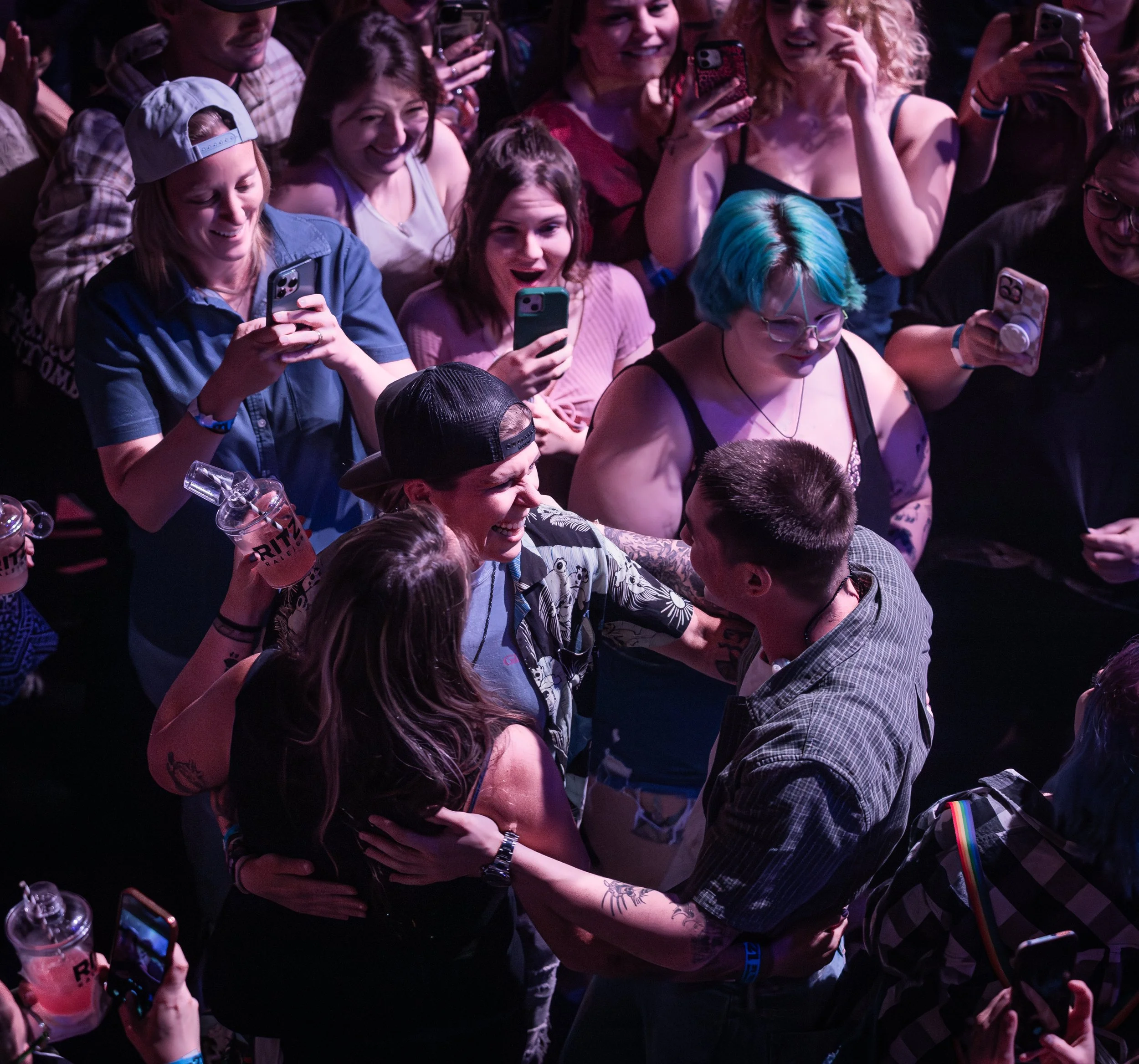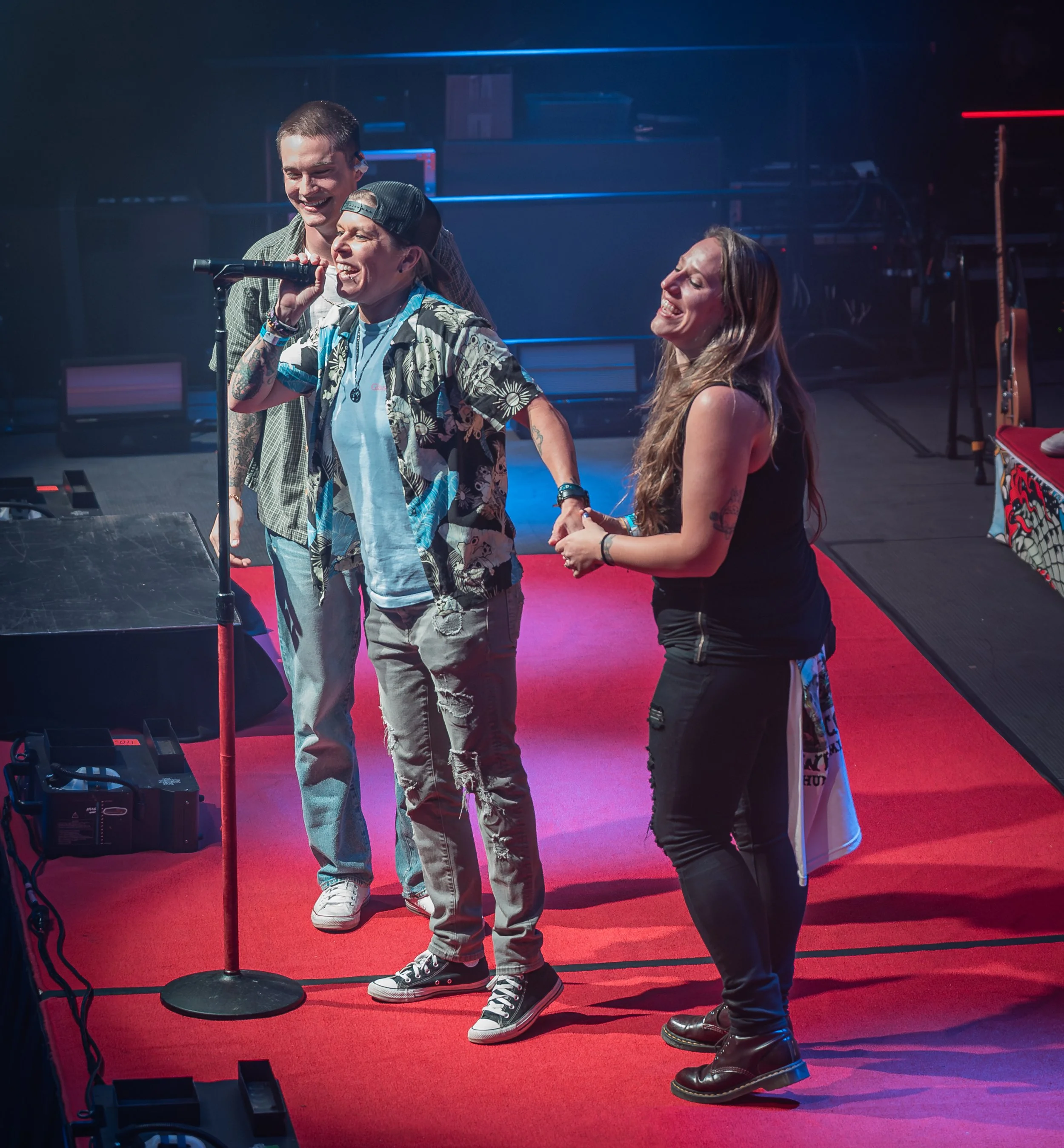 And she did. Right there in the crowd, she got down on one knee and proposed to her girlfriend, who immediately said yes. Cameron didn’t hesitate — he jumped off the stage, ran into the crowd, hugged the newly engaged couple, and congratulated them personally. Then he brought them up on stage, introduced them to the entire venue, and the crowd erupted in cheers. It was a genuinely sweet, emotional moment that made the night feel even more special.